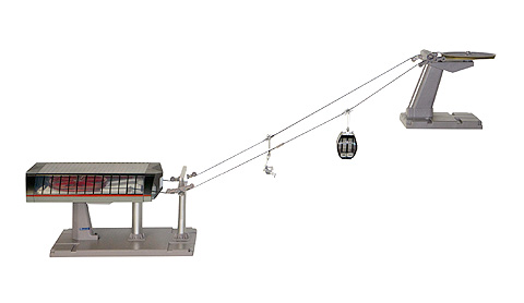 Bestehend aus der Talstation mit Antrieb und verglastem Gebäude, Stütze mit Umlenkrolle, der Bergstation mit Umlenkrolle, einer silber/schwarzen Kabine, einem 6-er Sessel und 8m Kabel mit Verbindungstülle.