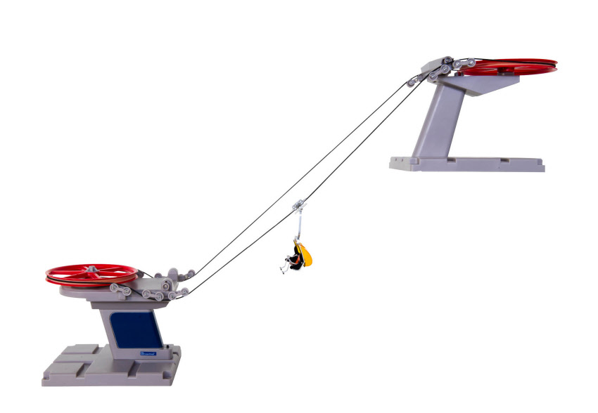 Mit dem mitgelieferten Seil ist ein Abstand zwischen Berg- und Talstation von etwa 4m möglich. Je nach Bedarf kann das Kabel einfach gekürzt werden. Für längere Strecken ist ein Verlängerungsseil mit Verbindungselement separat erhältlich. Der Betrieb der Seilbahn erfolgt im durchgehenden Umlaufprinzip.